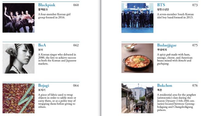 Based on the Korean-language edition published in 2024, the English version contains 347 entries and more than 600 photographs, covering subjects ranging from daily food, clothing and housing to internationally recognized cultural icons including BTS, Blackpink, the Netflix series Squid Game and the Oscar-winning film Parasite.