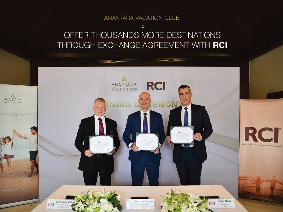 “We are thrilled to welcome Anantara Vacation Club back to the RCI exchange network,” said Olivier Chavy, President of RCI. “Anantara Vacation Club’s properties are known for their exceptional quality, and we believe that our members will rejoice at the amazing vacation options the Anantara Vacation Club affiliation will bring. I look forward to a great partnership and the exciting opportunities it brings in the many years to come.”
