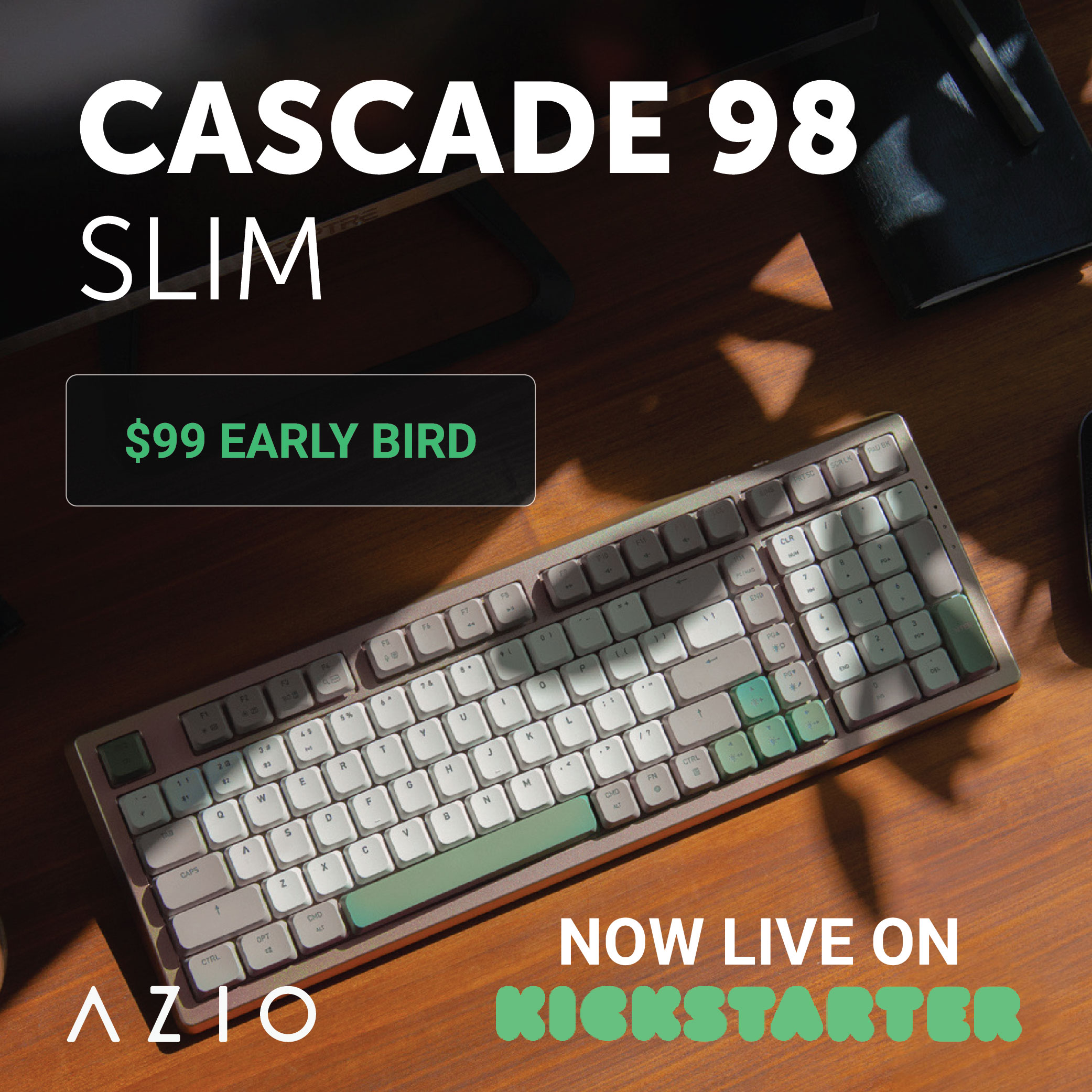 LOS ANGELES, Nov. 30 (Korea Bizwire) — AZIO, the company that created the popular Cascade 75% Keyboard Series, announced today the launch of Cascade 98% on Kickstarter. Last March, AZIO successfully funded the Cascade 75 keyboard Series and hit its funding goal within the first week. As a follow-up, the Cascade 98 offers a full-size number pad and is available in standard and slim profiles. This gives users the option to go low-profile, which is trending among keyboard enthusiasts.
