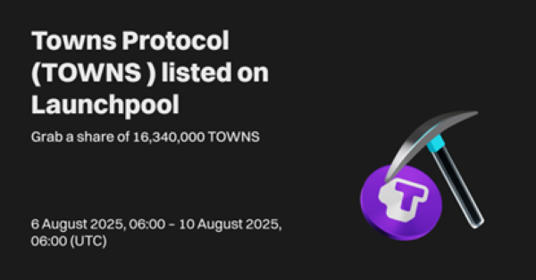 Bitget’s Towns Protocol Launchpool campaign is offering 16,340,000 TOWNS. in total rewards. Eligible users can participate by locking BGB and TOWNS during the event, which runs from 6 August 2025, 06:00 to 10 August 2025, 06:00 (UTC).
