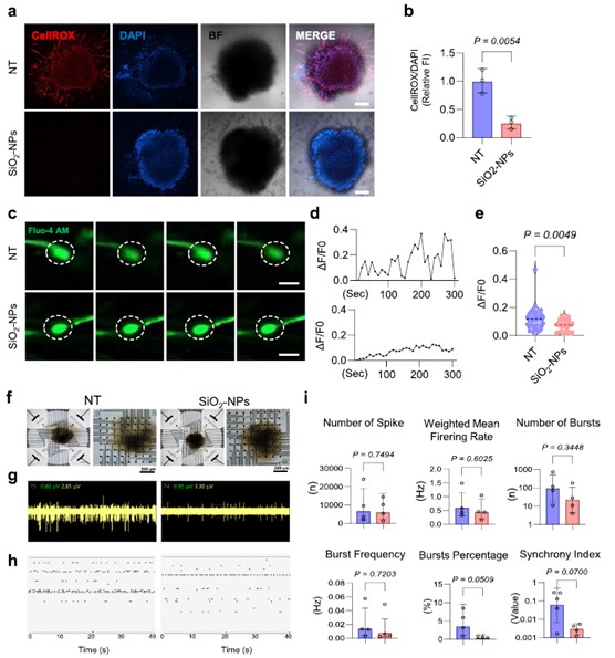 Analysis of functional changes in midbrain organoids following exposure to nanomaterials.