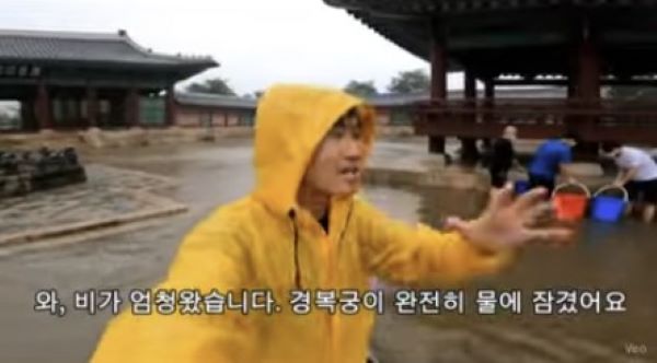 SEOUL, July 22 (Korea Bizwire) — A viral video shows Seoul’s Gyeongbokgung Palace submerged in water after torrential rain, with people in yellow raincoats bailing out water — and, in a surreal twist, a seal swimming across the flooded courtyard. It looks uncannily real, but the scene is pure fiction, created by artificial intelligence.