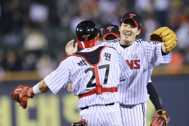 Im Chan-kyu followed that up with the first complete game shutout of his 14-year career the very next day. Just when it seemed the Twins couldn’t possibly keep the streak going, No. 5 starter Song Seung-ki held the Eagles to a hit over seven scoreless frames the day after Im’s gem.