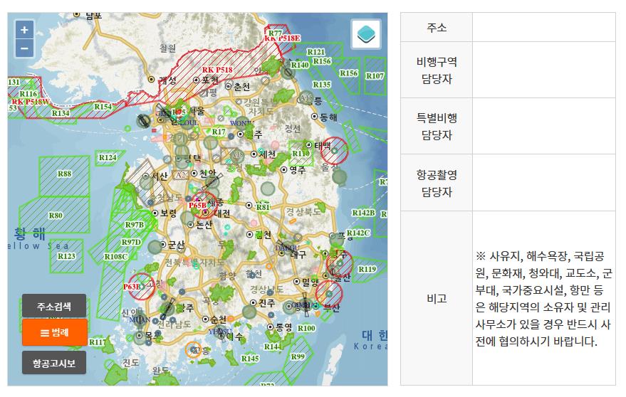 Drone flight zone search screen (Image source: Drone One-Stop Civil Service Portal)