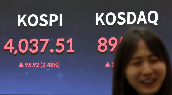 The benchmark Korea Composite Stock Price Index (KOSPI) is displayed on a screen at the Korea Exchange, the country’s main bourse operator, on Oct. 27, 2025. (Yonhap)