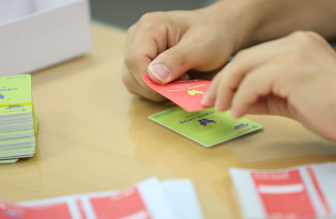 On July 24, at a community service center in Buk-gu, Gwangju, government workers are seen affixing stickers to consumer relief cards to obscure their original colors. The city had come under fire for issuing color-coded prepaid cards based on income levels—a move widely criticized for lacking sensitivity to human rights. (Yonhap)