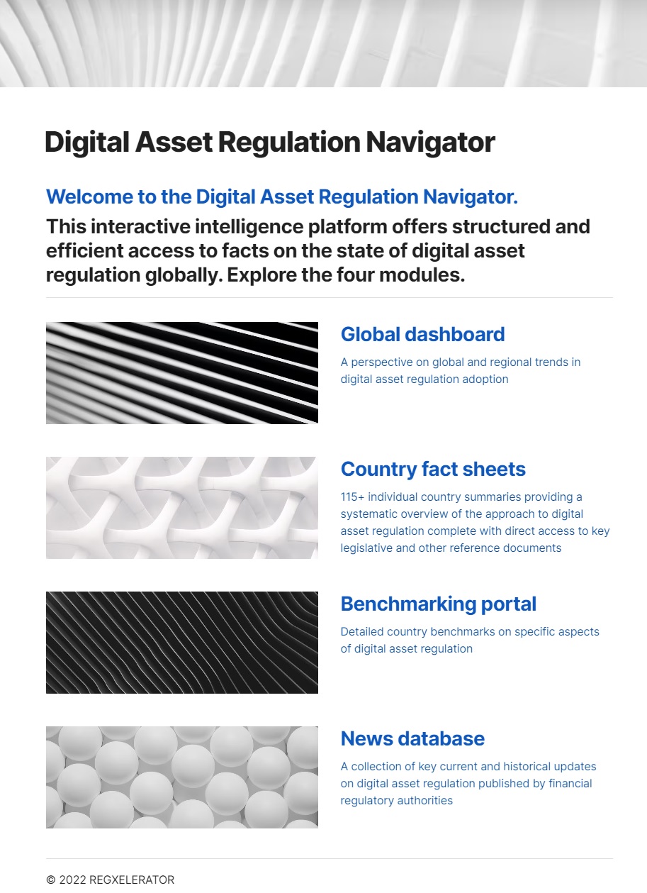 Founder and CEO Jenny Radziwolek stresses that: “Digital asset regulation is at a critical juncture. Greater harmonization in standards across jurisdictions is critical in minimizing the risk of regulatory arbitrage. A thorough understanding of the current baseline is foundational for driving these efforts, as well as identifying current regulatory blind spots and gaps. Regxelerator’s platform seeks to provide a new resource that helps streamline access to fact-based information, which can then help inform the policy dialogue at both a national and global level.”
