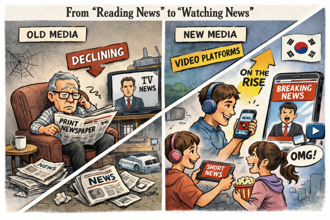 South Koreans Turn From Portals to Video Platforms for News, Survey Finds (Image supported by ChatGPT)