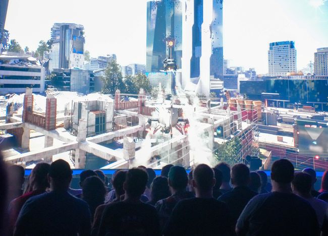 Spectators at Gamescom 2025’s Opening Night Live gather to watch the debut trailer of 'Cinder City,' the latest title from NCSoft’s subsidiary, Bigfire Games.