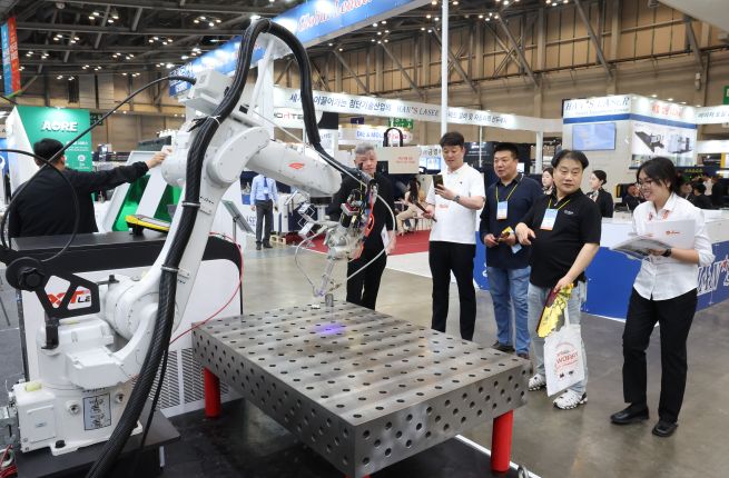 This file photo taken May 20, 2025, shows a technology show in Busan, about 325 kilometers southeast of Seoul, where artificial intelligence (AI) robot, smart factory and other cutting-edge technologies are being showcased. (Yonhap)
