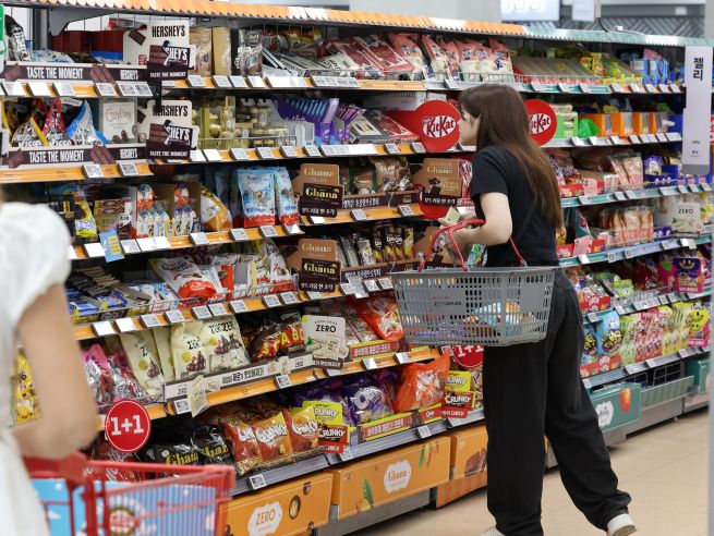This photo shows chocolates displayed at a large supermarket in central Seoul on June 8, 2025, amid a surge in processed food and coffee prices. (Yonhap)