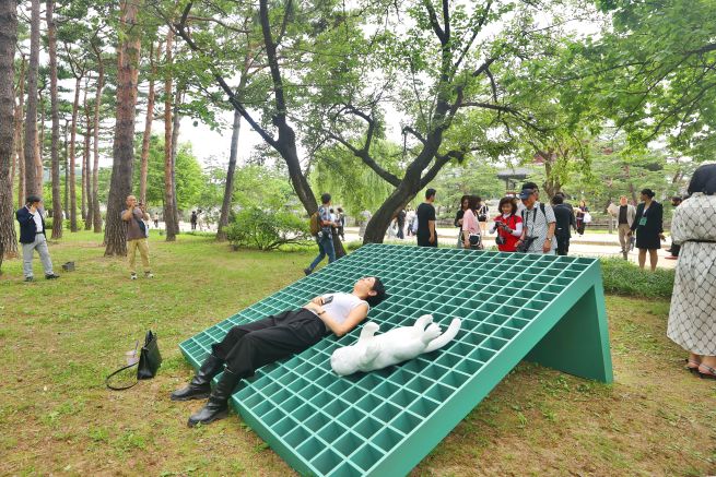 Titled “Thinking Gyeongbokgung”, the exhibition is a collaboration between the Korea Heritage Service and the Korea Heritage Agency, featuring a series of contemporary installations scattered across the palace grounds.