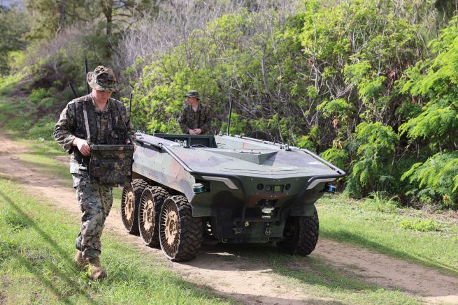 A U.S. Marine operates Hanwha Aerospace’s multipurpose unmanned ground vehicle, Arion-SMET. (Photo provided by Hanwha Aerospace)