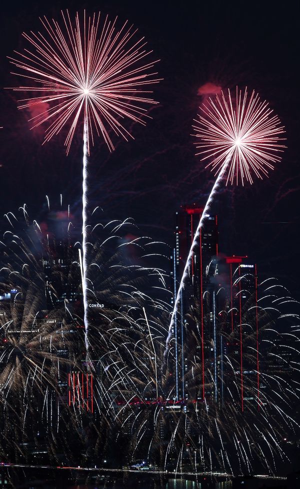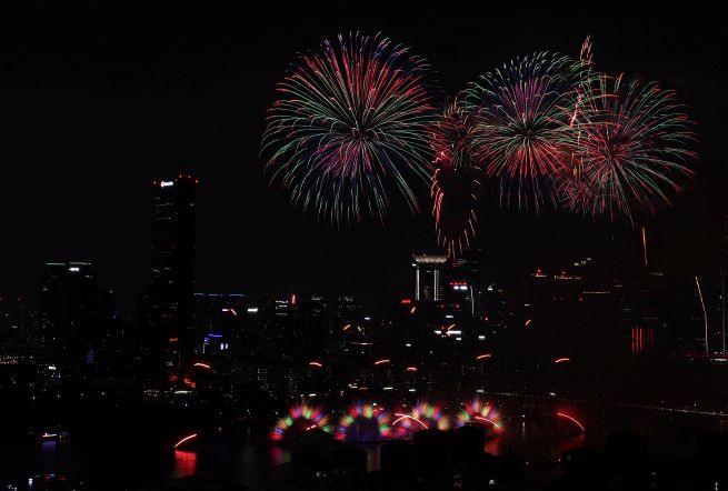 Now in its 21st year, the festival featured a first-ever “mirror image” presentation, with synchronized fireworks launched on both sides of Wonhyo Bridge, extending west toward Mapo Bridge and east toward the Hangang Railway Bridge.