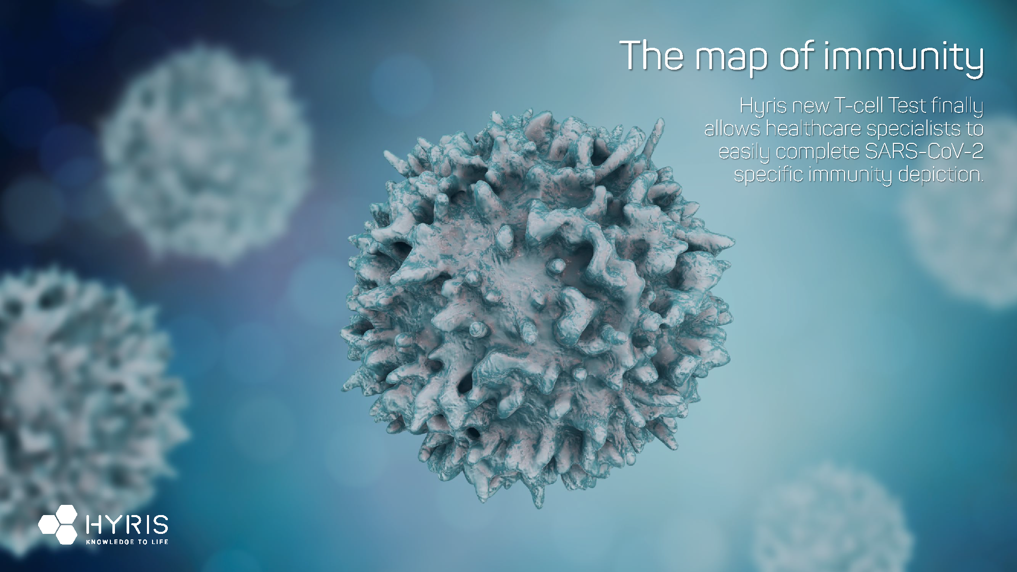 A 3D rendering of a T cell. Our knowledge of immunity needs to go beyond antibodies. Hyris new T-Cell Test is finally available to the EU market under CE-IVD certification.