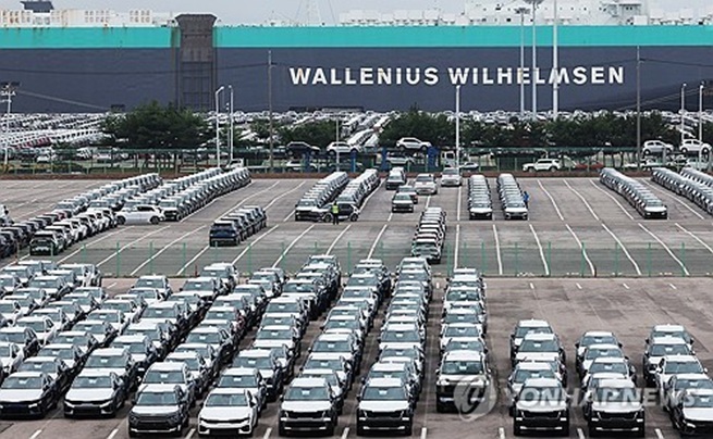 Vehicles awaiting export (Image courtesy of Yonhap)