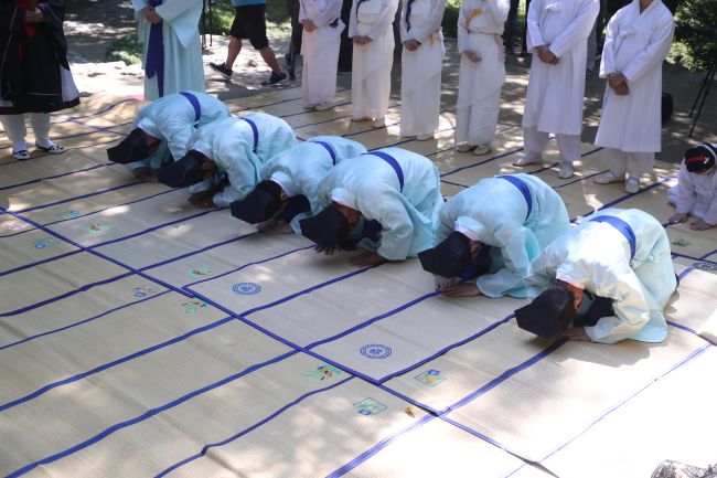 On the 23rd of last month, the Gangneung Danoje Preservation Society held a rain ritual (Giuje) at the Daegwallyeong Sanshintang and Daegwallyeong Guksa Seonghwangsa shrines in Hoenggye-ri, Daegwallyeong-myeon, Pyeongchang-gun, Gangwon Province. (Image courtessy of Yonhap)