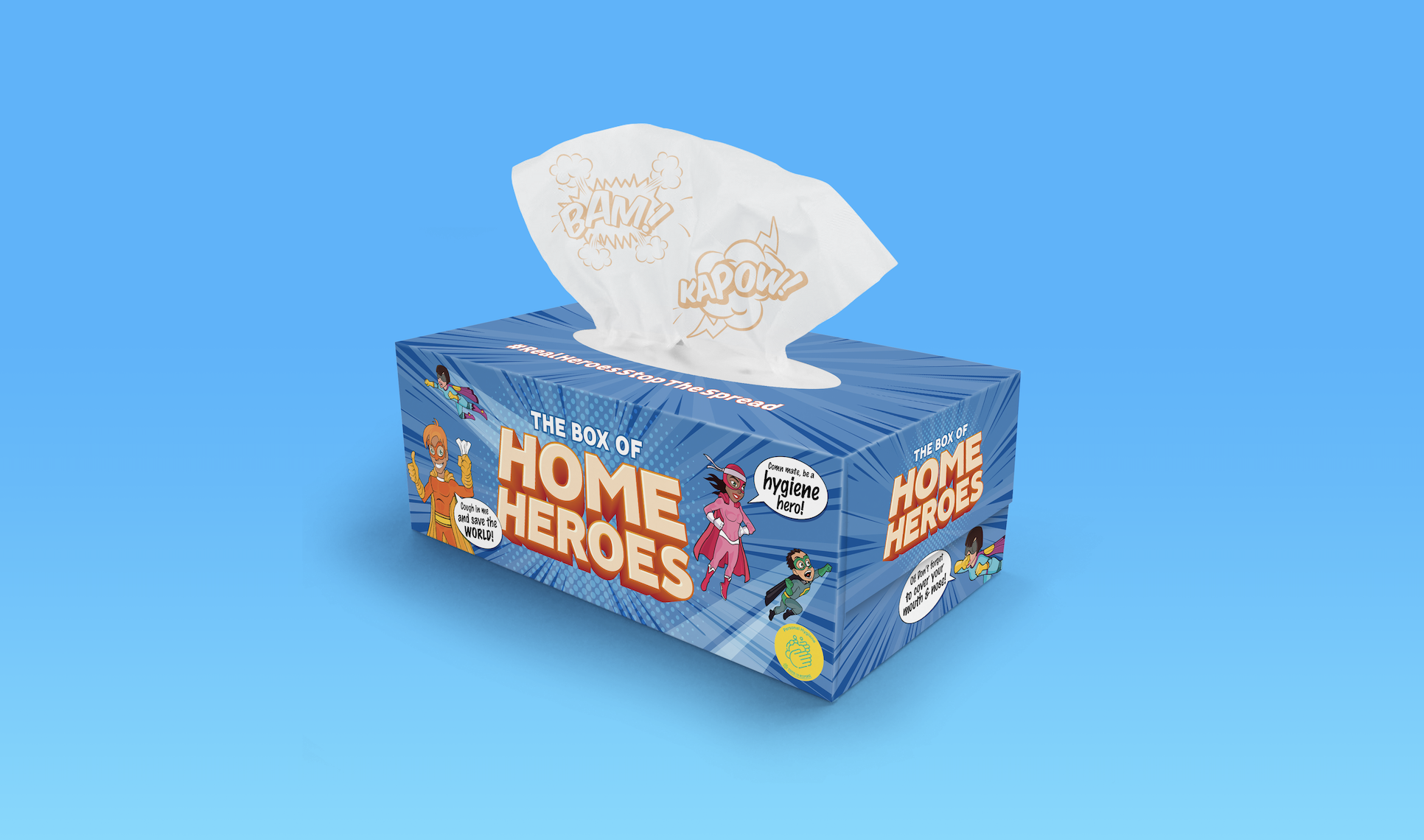 Responding to the UN’s public health message of personal hygiene—specifically respiratory hygiene, The Box of Home Heroes: Every Tissue Can Stop the Spread! creative takes the form of a craftily designed tissue box which features heroic characters and respiratory hygiene practices localized in Aussie slang, to inspire the public to become heroes in the fight against COVID-19.