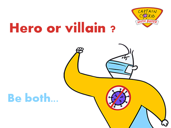 Captain CO-RID educates the public at rapid fast rates and calls on them to become everyday heroes—and villains—like him, by both adopting and helping him communicate these myth-busting messages faster than the spread of the coronavirus.