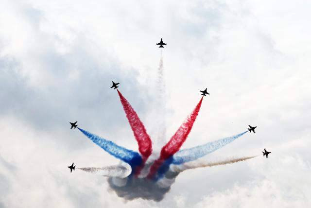 The photo shows the South Korean Air Force’s Black Eagles aerobatic team performing during the Seoul International Aerospace and Defense Exhibition (ADEX) at Seoul Air Base in Seongnam, Gyeonggi Province, on October 19. (Photo courtesy of Yonhap)