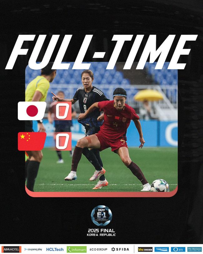 This image captured from the official X page of the East Asian Football Federation (EAFF) shows the final score of the match between Japan and China at the EAFF E-1 Women’s Football Championship at Suwon World Cup Stadium in Suwon, Gyeonggi Province, on July 16, 2025. (Yonhap)