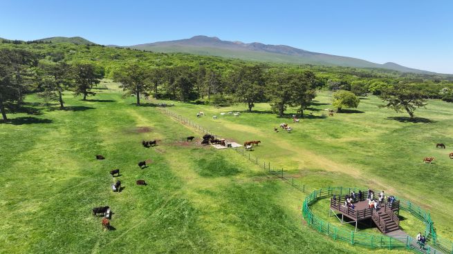 Jeju’s iconic black cattle and native ponies roam leisurely across the island’s green pastures. (Yonhap)