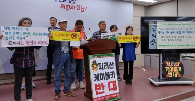 ![Press conference by environmental groups in South Gyeongsang Province opposing the installation of a cable car in Jirisan [Provided by the South Gyeongsang Federation for Environmental Movements]](http://koreabizwire.com/wp/wp-content/uploads/2025/04/Opposition-to-the-Jirisan-Cable-Car-Installation.jpg)
