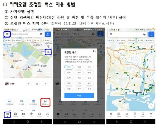 Kakao said on Nov. 20 that research teams from Seoul National University and KAIST analyzed the social value of its “Ultra-Precise Bus” service on KakaoMap, which shows bus movements, traffic-signal waits and speeds in real time. First launched on Jeju Island in 2019, the service now operates in 20 regions nationwide.