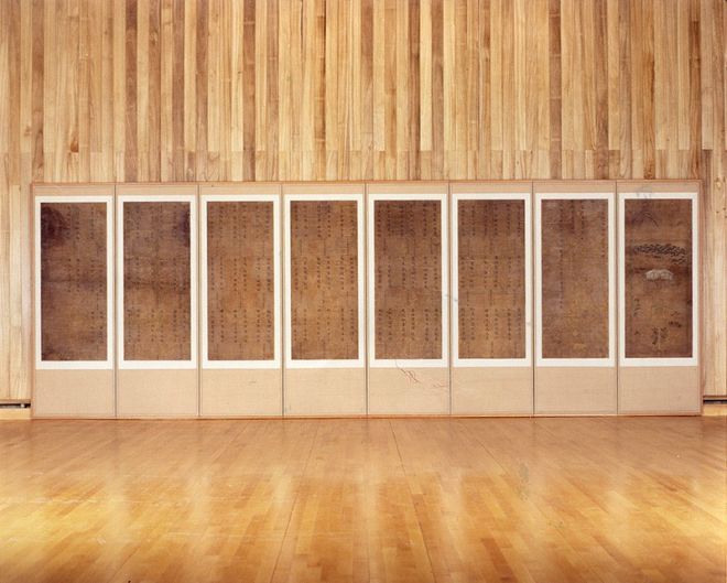 One panel features King Yeongjo’s own poem, while the following six include poetic responses from 50 of his court officials, forming a collaborative literary piece known as yeongusi — a traditional format in which poets take turns writing lines.