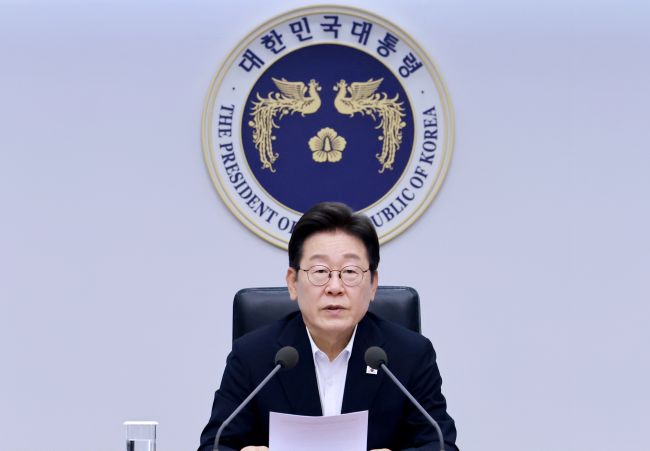President Lee Jae Myung speaks during a meeting with senior aides and secretaries held at the presidential office in Seoul on July 17, 2025. (Image courtesy of Yonhap)