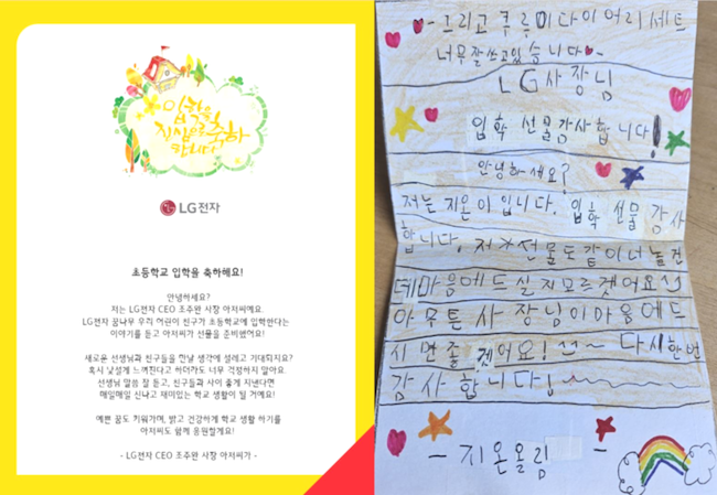 In addition to laptops and screens, LG Electronics is providing school supply sets and sportswear to 1,500 employees with children starting elementary school. Notably, CEO Cho Joo-wan is personally contributing to the initiative by sending a congratulatory letter under the name “Uncle CEO”, encouraging children to enjoy school life, listen to teachers, and build friendships.