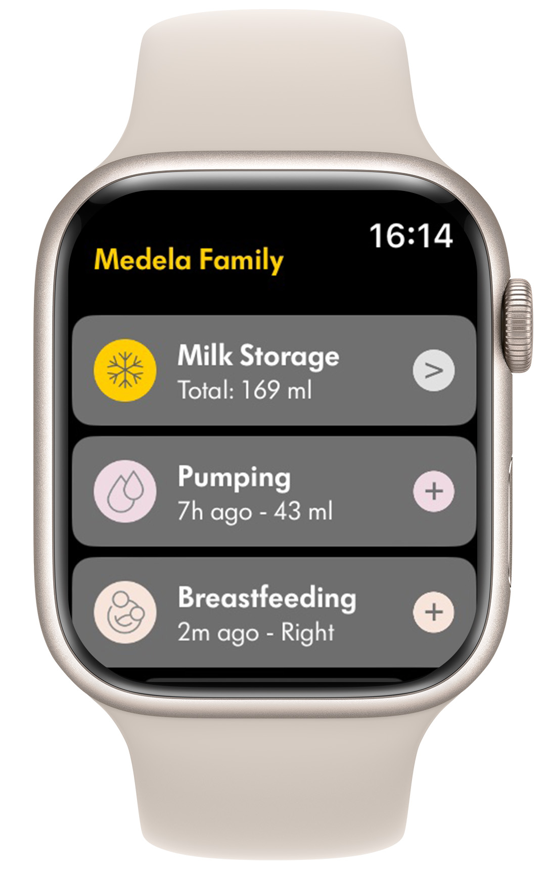 Compatible with both WatchOS® and Wear OS, the Medela Family smart watch app synchronizes automatically with the main smartphone app. This integration provides uninterrupted tracking of baby’s activities, from breastfeeding and pumping to sleep and diaper patterns.