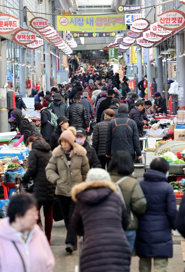 Malbau Market in Buk-gu, Gwangju, is crowded with shoppers on Feb. 9, five days before the Lunar New Year holiday. (Yonhap)