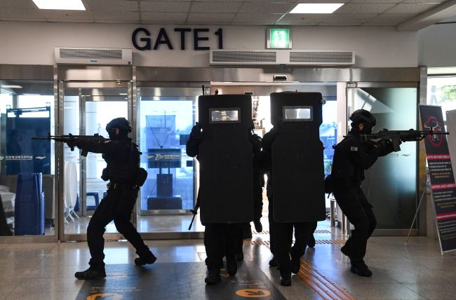 The drills took place at the cruise terminal of Incheon Port, some 30 kilometers west of Seoul, as part of the annual Ulchi Freedom Shield (UFS) exercise between South Korea and the United States, according to the Navy.