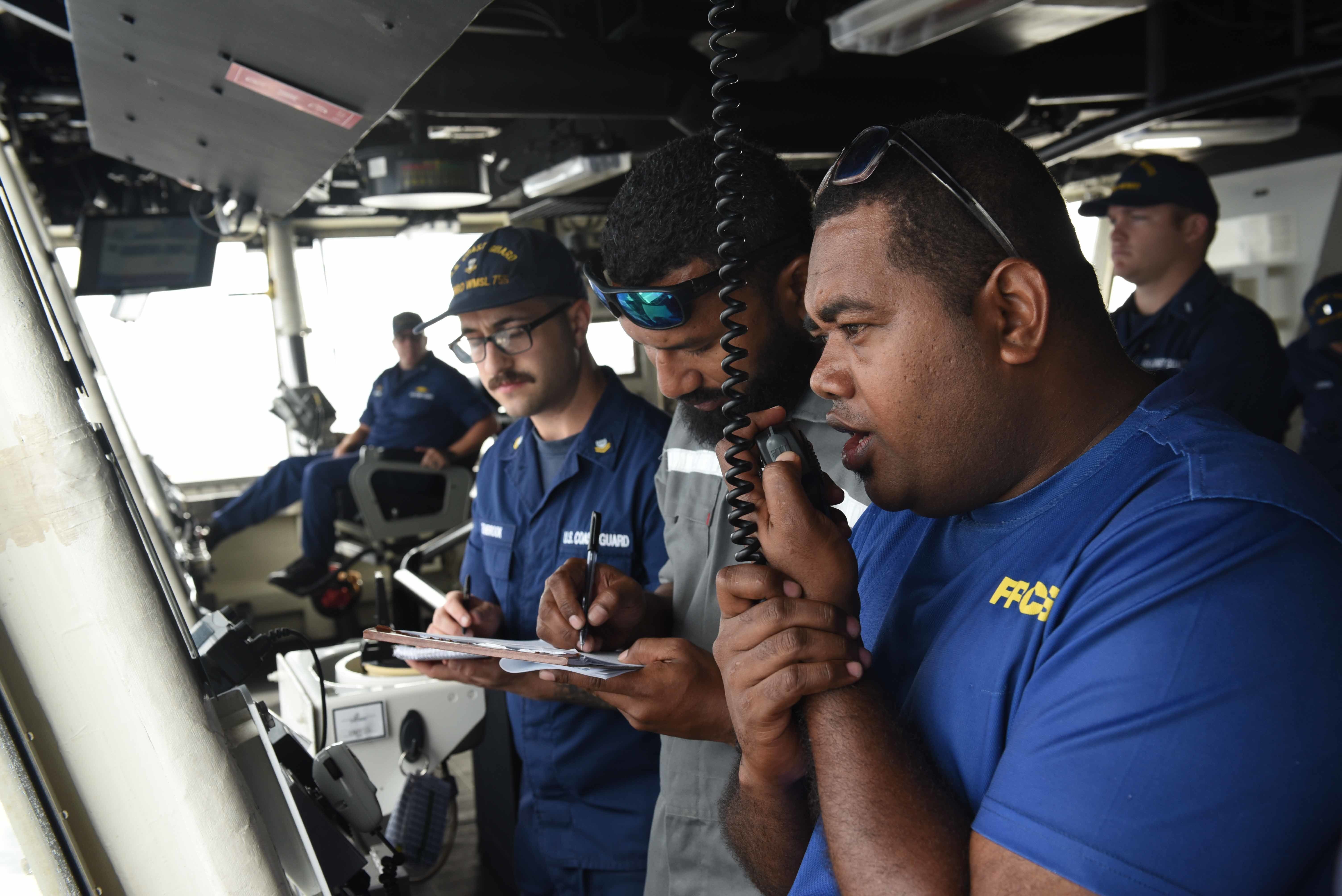 A team of Fijian law enforcement officers work with crew aboard U.S. Coast Guard Cutter Munro as part of operation aimed to counter illegal, unreported and unregulated fishing and strengthen maritime security throughout the Indo-Pacific. The Joint Analytical Cell will provide authorities with fisheries intelligence, analysis and capacity building to bolster national and regional enforcement mechanisms that target illegal fishing and its associated crimes.