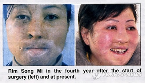 This case was revealed in 2015 by North Korea’s weekly English-language newspaper. It featured Rim Song-mi, a 28-year-old female factory worker from Taegwan County, North Pyongan Province, who suffered severe facial burns in a factory fire in 2006. Over the course of eight years, she underwent a series of plastic surgeries to restore her appearance. The Pyongyang Times published side-by-side photos comparing Rim’s face from four years prior to her current appearance.