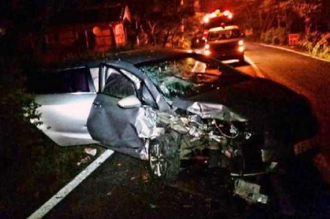 A vehicle driven by a man in his 20s crashed into a street tree while under the influence, leaving it heavily damaged. Public calls for stronger penalties for drunk driving continue to grow. (Provided by Jeonju Deokjin Fire Station)