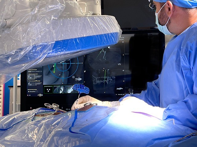 Treatment for spine conditions can often be complex and delicate. Surgeons need to take particular care to avoid fragile neurological and vascular structures close to the spine. Such procedures have traditionally been an ‘open surgery’, where surgeons would manually manipulate the patient’s spine to position implants such as pedicle screws. As technology has advanced, there has been a shift to using minimally invasive techniques, such as small incisions in the patient’s skin, minimizing blood loss and soft tissue damage and consequently reducing postoperative pain. In both approaches, surgeons can now use the real-time imaging and 3D navigation of ClarifEye. Intra-operative image guidance increases clinical accuracy and improves outcomes, with patients subject to fewer revision surgeries compared to the previous standard of care [1,2]. Data published in Science Reports demonstrated that ClarifEye performed better in accuracy than open surgery pedicle screw placement without 3D navigation (94% vs 89,6%) [3]. In addition, data from a clinical study using ClarifEye, showed a 98% accuracy of pedicle screw placement during minimally invasive procedures [4].