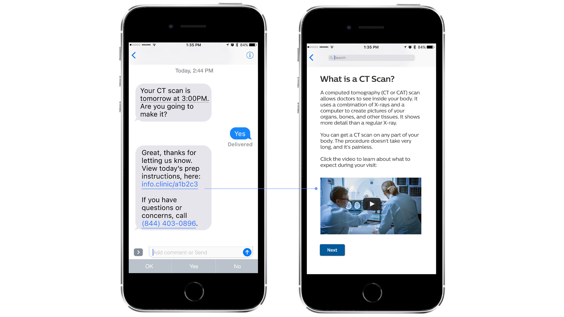 Patients anxious about a potentially serious diagnosis can receive support even before arriving for their exams, with personalized instructions and reminders delivered via SMS-based communications from Philips Patient Management Solution. The solution sends personalized reminders and helpful information about upcoming telehealth consults, helping patients to prepare for their virtual appointments. Before in-person appointments, healthcare providers can use Patient Management to screen patients using a digital survey to identify possible COVID-19 symptoms.