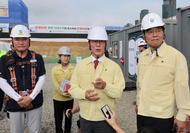Prime Minister Kim Min-seok (2nd from R) visits the construction site for a national museum in Sejong, 109 kilometers south of Seoul, on July 7, 2025. (Image courtesy of Yonhap)