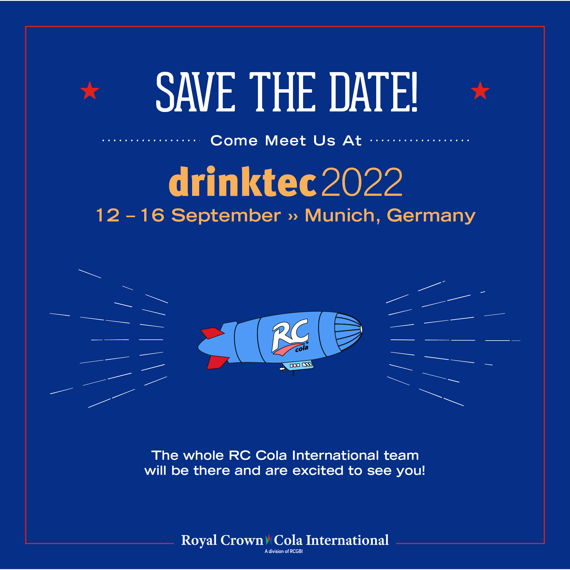 RC Cola welcomes members of the industry to visit the team at their Drinktec booth 455 in Hall A5 and learn more about the new products and updates. You may request a meeting with one of our Business Managers by emailing WeWelcomeBottlers@rcgbi.com