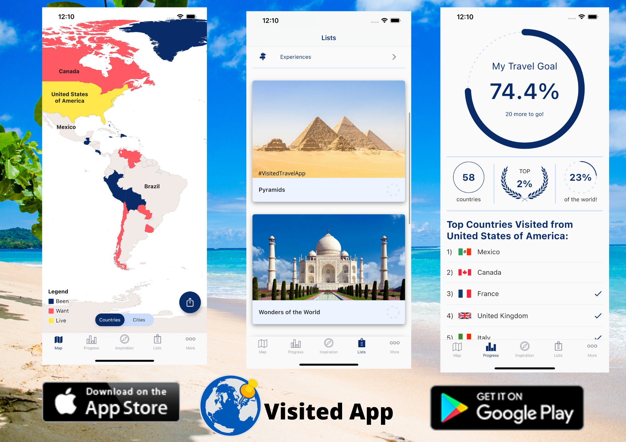 Visited has rolled out a new set of travel lists. The list feature allows users to not only select the sites that they have visited but also see how they rank against other travellers. Users will find travel lists that match their interests, such as food and drink, nature, history, culture, architecture, religious sites, sporting events, and more. Popular lists include: world capitals, ancient sites, lists of cruise ports, top beaches, best snorkelling locations, mountain ranges and art museums. The travel lists are sorted based on popularity by over 1.3 million international travellers who have installed the Visited app.