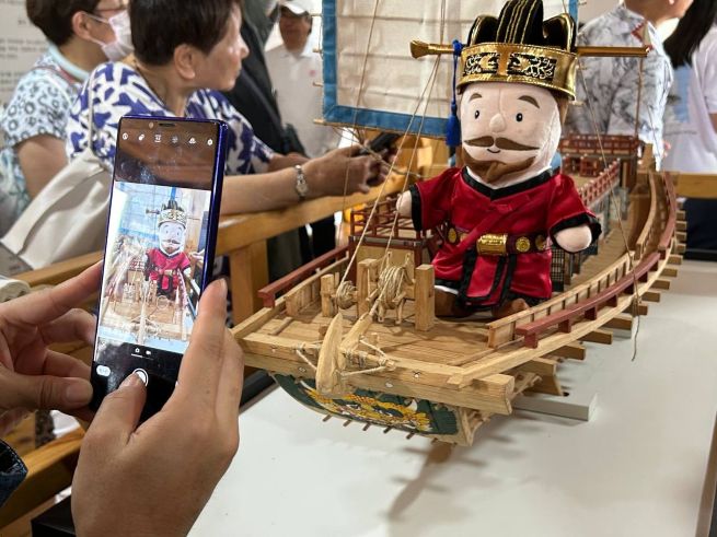 A scene from the arrival ceremony of the Joseon Tongsinsa replica ship held in Shimonoseki, Japan, last August. A local resident tours the interior of the replica ship, a symbol of Korea-Japan exchanges during the Joseon Dynasty, and takes photographs.