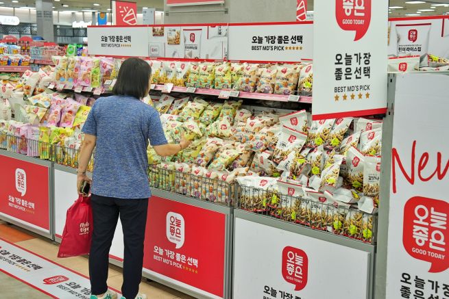 Major supermarkets are following suit. Private-label goods account for roughly 8 percent of sales at Emart and 10 percent at Lotte Mart. Emart operates well-known PB labels such as No Brand, Peacock, 5K Price, and Days, while Lotte Mart promotes “Today’s Good” and “Cookit.”