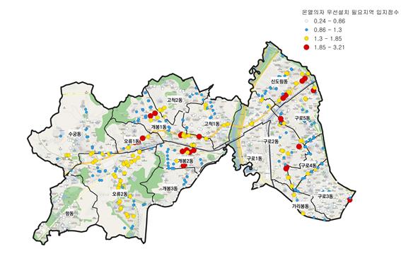 Analysis Results of Priority Areas for Heated Bus Bench Installation (Image courtesy of Seoul AI Foundation)