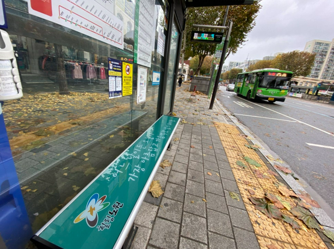 A heated bench installed at a bus stop in Nowon District, Seoul (Photo courtesy of Nowon District Office official blog)