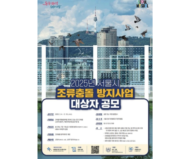 Interested applicants must submit a completed application form along with the property owner’s consent via official correspondence, mail, or in person to the Seoul Metropolitan Government’s Natural Resources Team. Five locations will be selected based on the severity of bird collision incidents and the feasibility of implementing preventative measures. Each chosen site will receive anti-collision tape worth up to 10 million KRW, though installation costs must be covered by the applicants. Additionally, within a month of installation, participants must submit photographic evidence of the completed work.