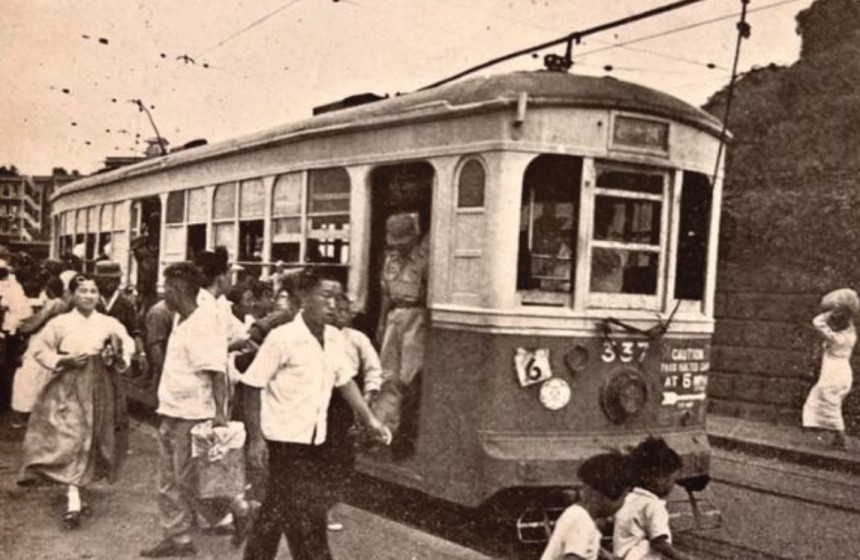 The photo shows a historical scene of streetcar operations in Seoul. (Photo source: Wikipedia)