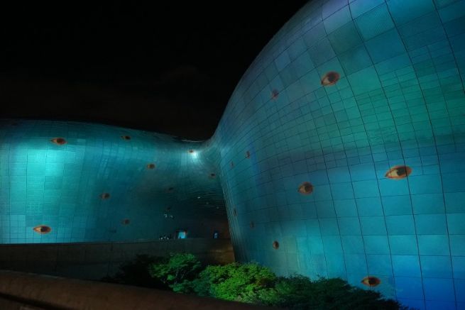 Laurent Grasso’s “Panoptes” displayed on the exterior wall of DDP (Photo courtesy of Seoul Design Foundation)