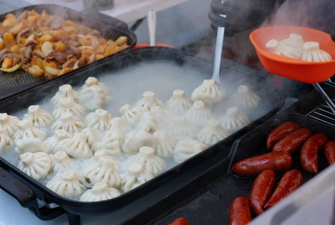 Georgian-style dumplings, known as khinkali, are prepared at the Georgia booth at the 14th European Christmas Market held in front of the Seongbuk District Office in Seoul on December 7.